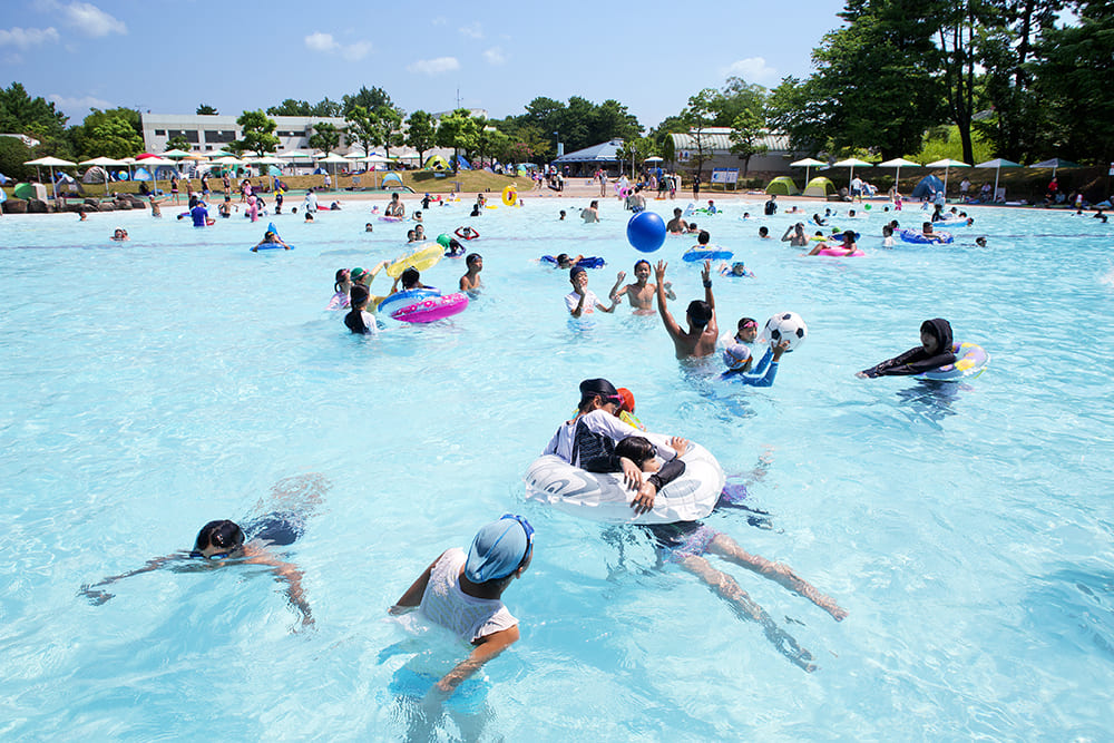 流れるプールや遠浅のプール、スリルあるスライダープールに幼児プールまで完備。