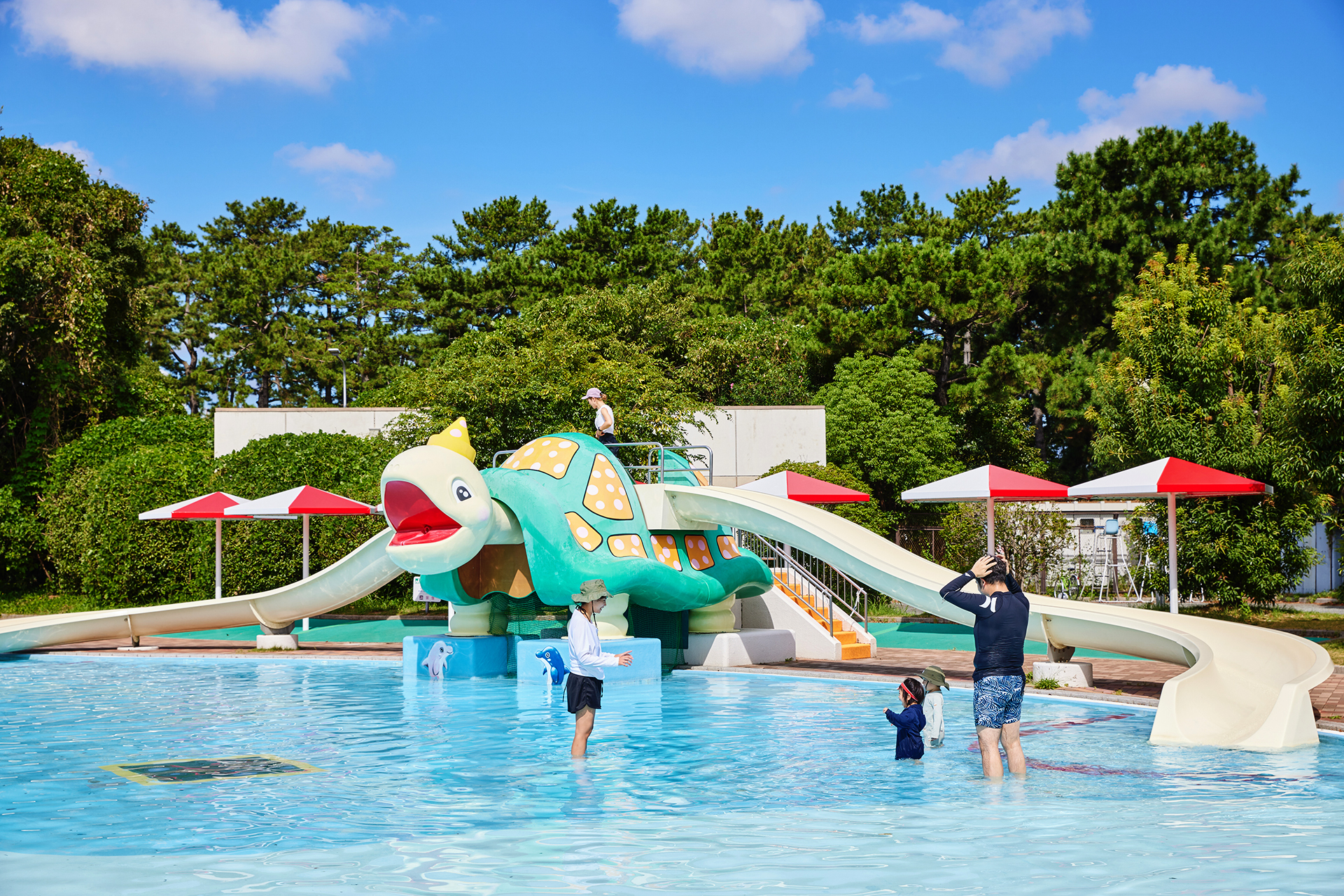 カメの形の滑り台があり、小さなお子様の水遊びに最適!